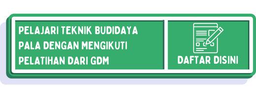 - Ketika proses persemaian bibit pala, gunakan Pupuk Organik Cair GDM Spesialis Perkebunan sebanyak 0,5 liter yang telah anda campur dengan 5 liter air. Rendam semua bibit pala pada cairan tersebut selama 30 menit.