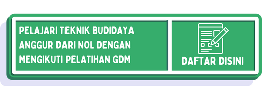 Untuk dulur yang tertarik belajar budidaya anggur dari awal hingga akhir, kebetulan nih sebentar lagi tim GDM akan mengadakan pelatihan budidaya anggur gratis. Dulur bisa daftar langsung dengan klik gambar di bawah ini ya.