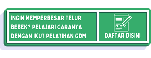 Pembudidayaan bebek tidak selalu mudah, seringkali petani bebek mengalami kendala yang sangat merugikan bagi mereka. Karenanya, tim GDM mengadakan pelatihan bebek untuk membantu dulur memaksimalkan hasil ternak Anda. Yuk gabung pelatihannya langsung dengan klik gambar di bawah ini: