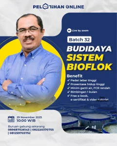 Sistem bioflok bisa meningkatkan kualitas hasil panen ikan. Tak hanya itu, sistem bioflok juga menjadi sistem budidaya yang jauh lebih mudah untuk diterapkan. Untuk dulur yang tertarik mempelajari teknik budidaya yang satu ini, dulur bisa langsung aja gabung dengan meng-klik gambar di bawah ini.
