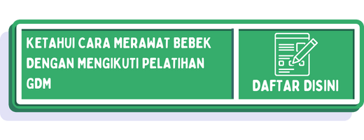 Pembudidayaan bebek tidak selalu mudah, seringkali petani bebek mengalami kendala yang sangat merugikan bagi mereka. Karenanya, tim GDM mengadakan pelatihan bebek untuk membantu dulur memaksimalkan hasil ternak Anda. Yuk gabung pelatihannya langsung dengan klik gambar di bawah ini: