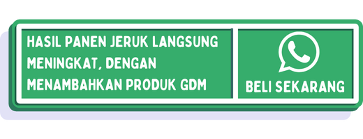 Ternyata ada banyak hal yang bisa anda lakukan untuk membuat pohon jeruk berbuah dengan cepat. Segera perbaiki kualitas media tanam, cara perawatan, dan pemberian pupuk yang tepat. Selalu gunakan GDM SAME, GDM Black Bos, dan Pupuk Organik Cair GDM Spesialis Tanaman Buah dengan rutin untuk mendapatkan hasil yang optimal.