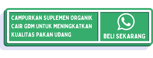 - Mempercepat pertumbuhan udang, karena pakan yang diberikan bersama Suplemen Organik Cair GDM Spesialis Perikanan bernutrisi tinggi.